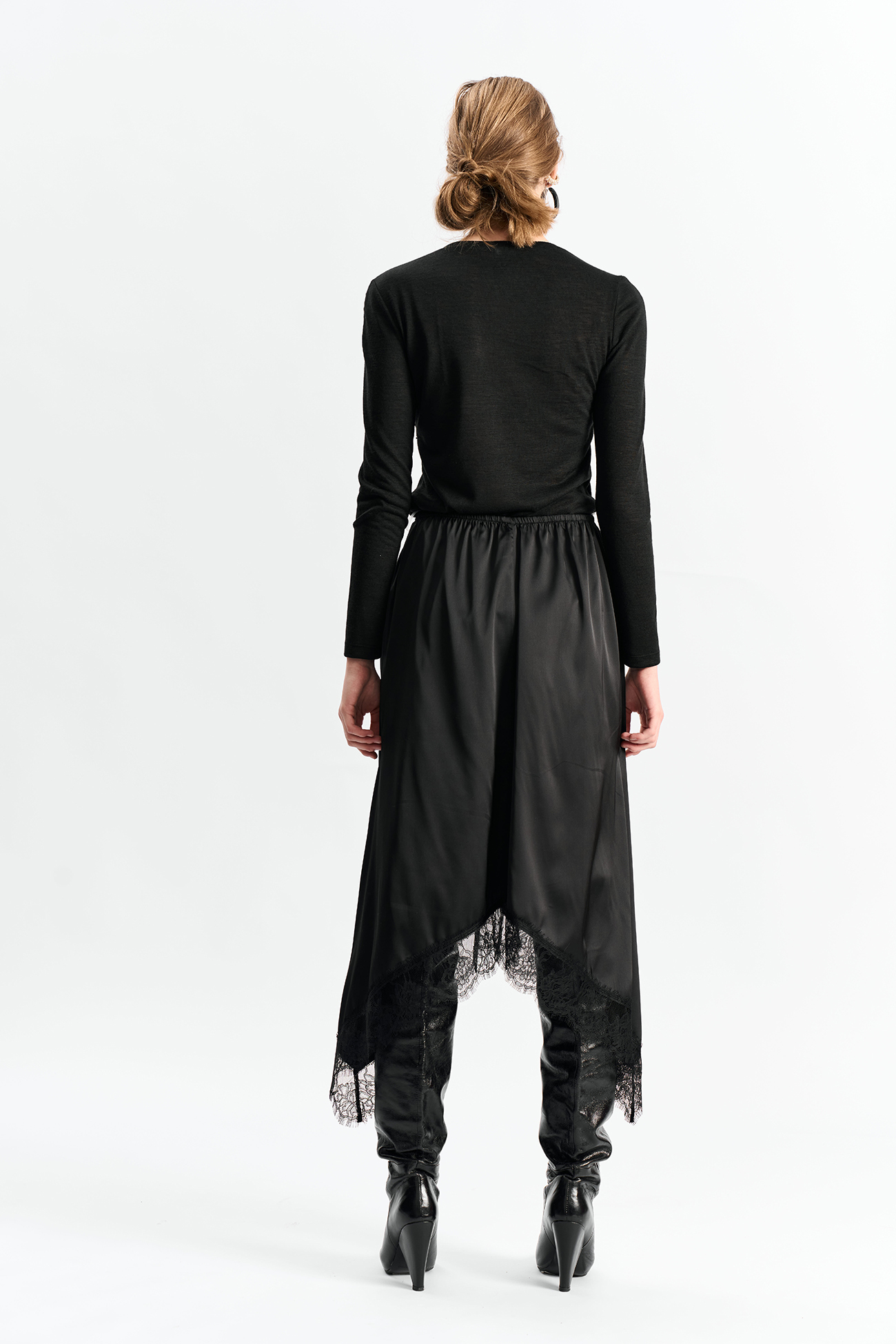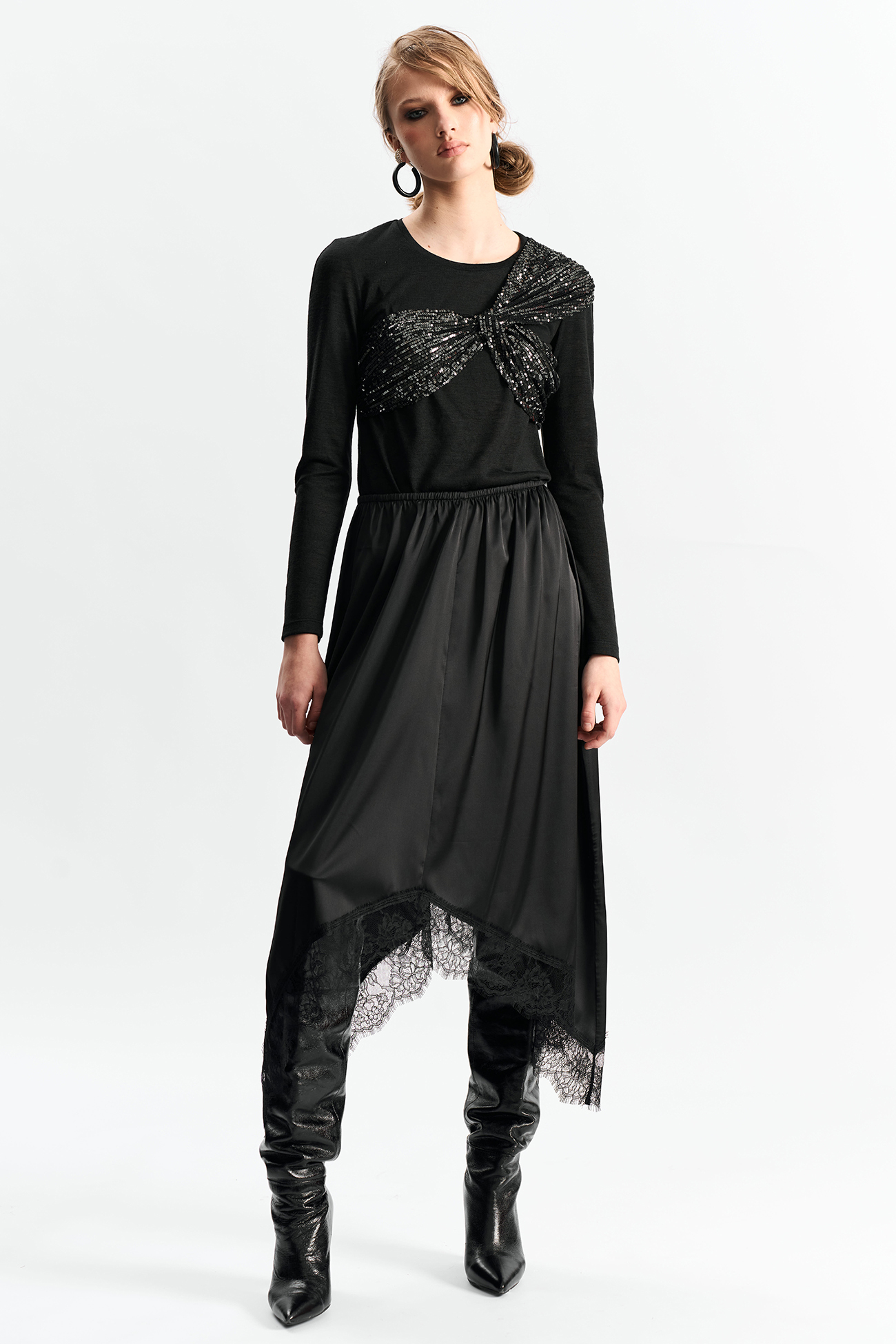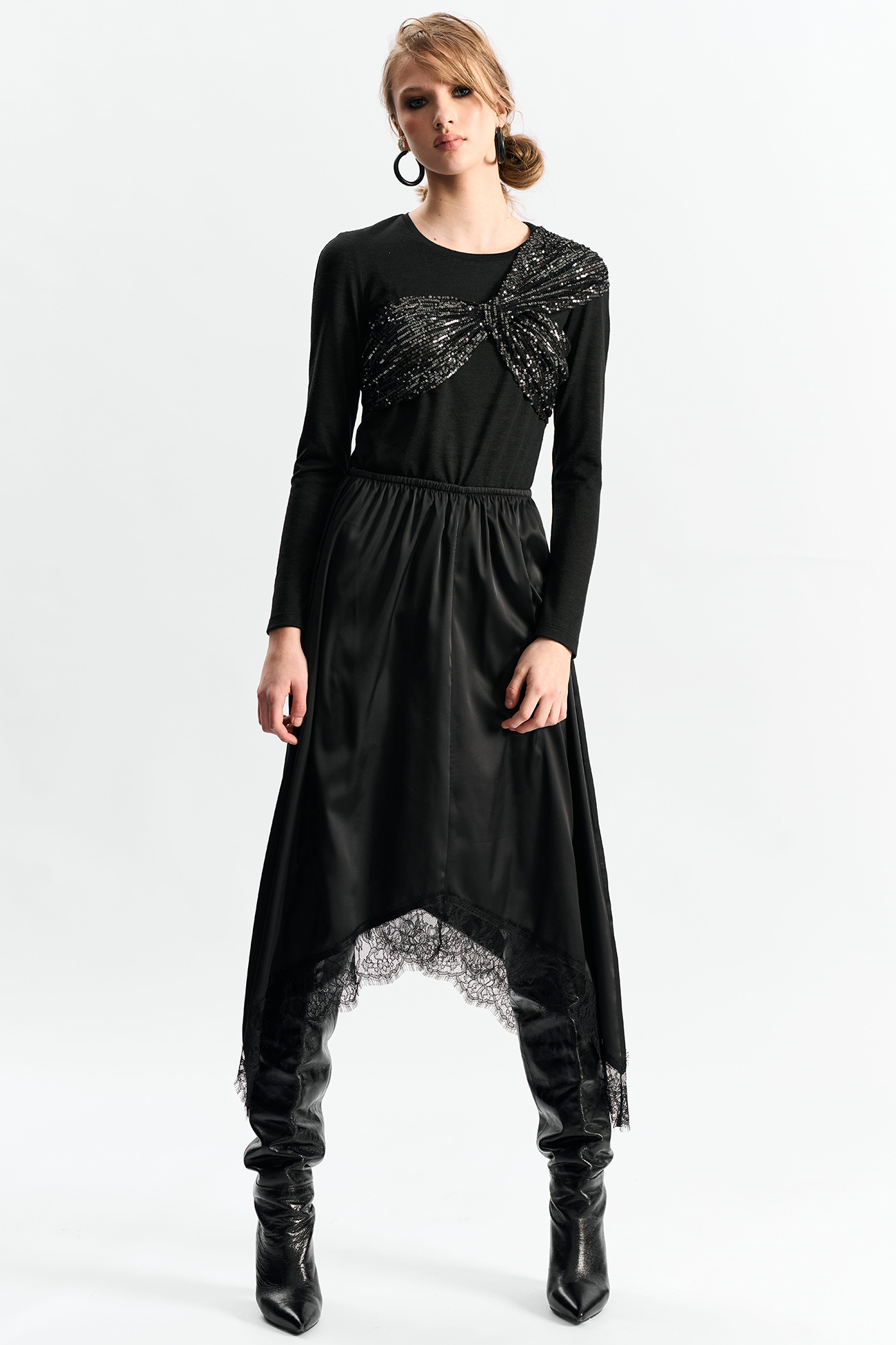 Юбка с резинкой по талии А-силуэта и фигурной линией низа отделанной французским кружевомСостав: 100% полиэстер
