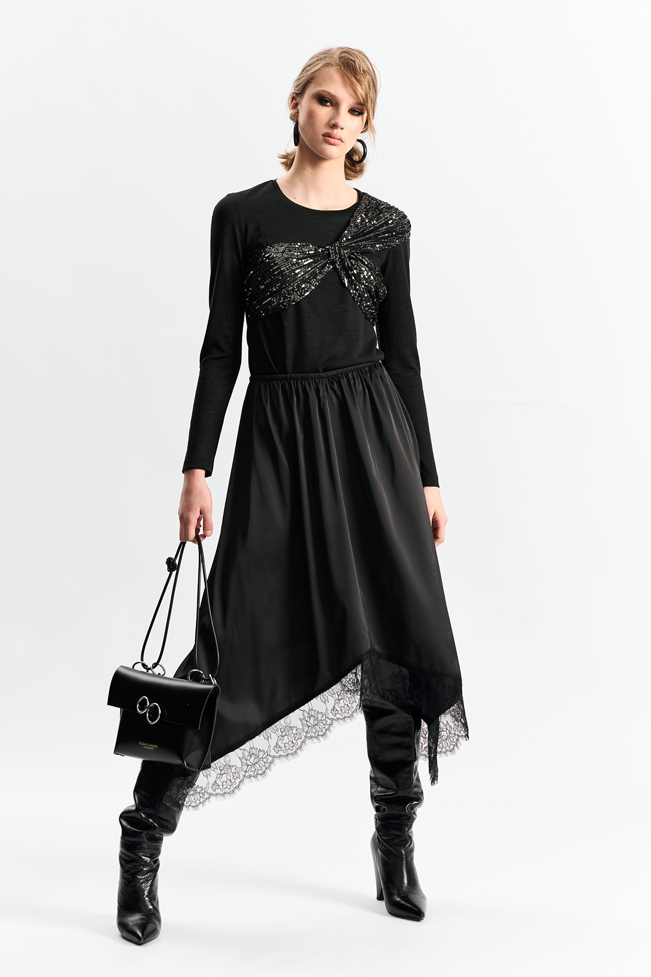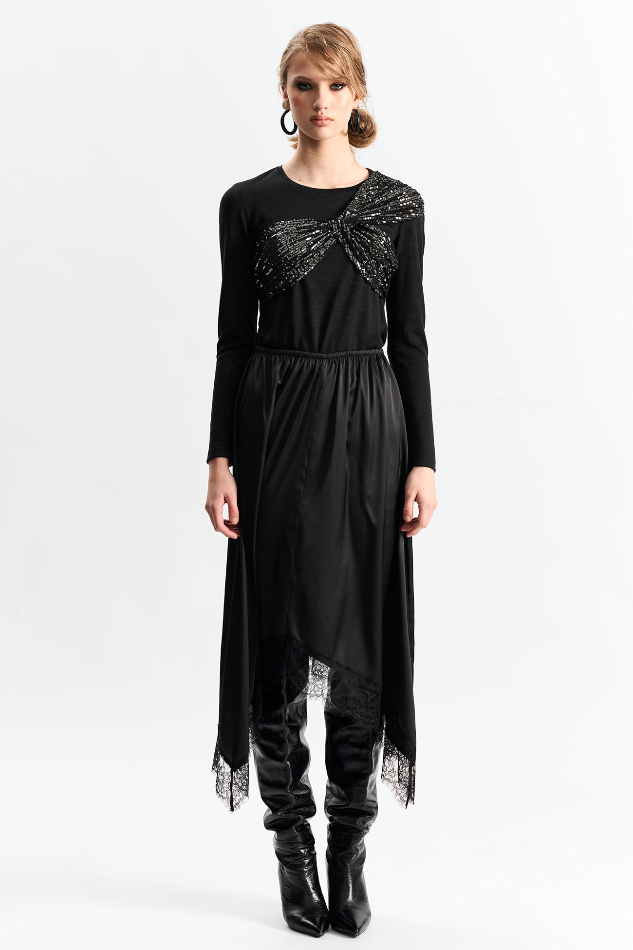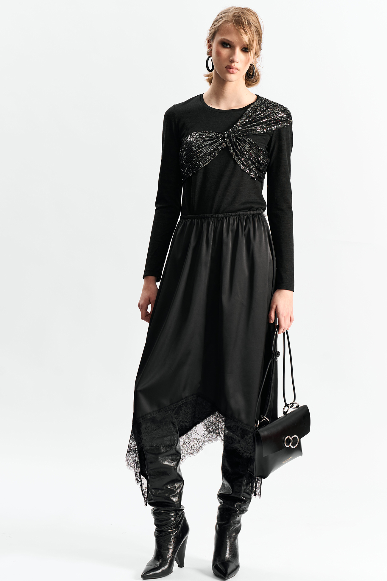 Юбка с резинкой по талии А-силуэта и фигурной линией низа отделанной французским кружевомСостав: 100% полиэстер